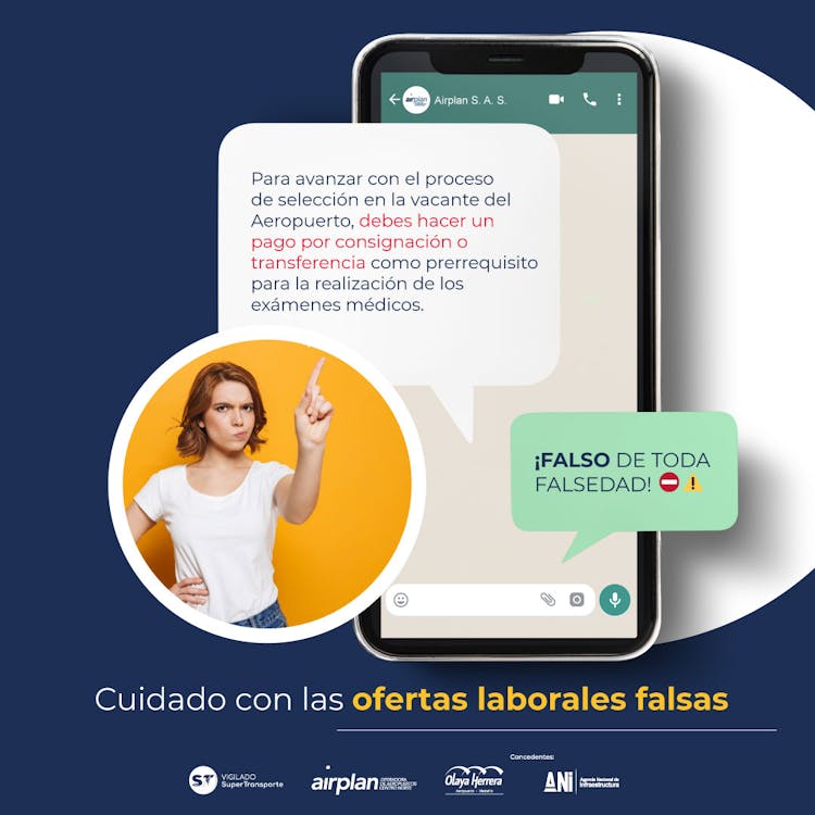 ¿Te han contactado en nombre de nuestra empresa o has visto alguna publicación similar en la que soliciten dinero para trabajar en el Aeropuerto? ¡Por favor denúncialo con la Policía, porque es una estafa!